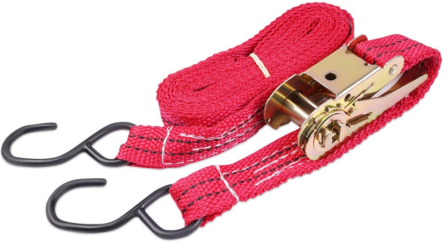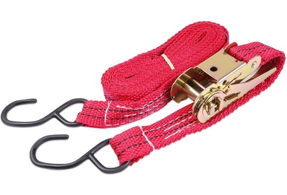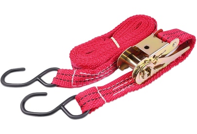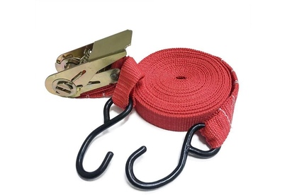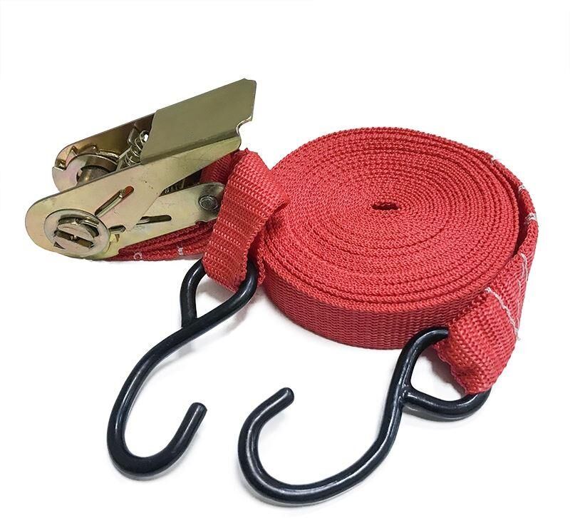 Выдерживает максимальную нагрузку – 400 кг Характеристики • Упрощенный храповый стяжной механизм из стали с ручкой в форме пластины. • Высокопрочная лента из полипропилена 25 мм. Имеет прочные швы. Отличается морозостойкостью и устойчивостью к агрессивным средам. Длина ленты 4 метра. • S – образные стальные крюки черного цвета.