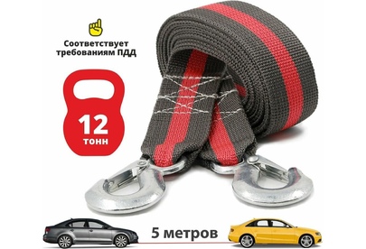 Трос буксировочный предназначен для перемещения автомобиля общей массой до 12 тонн. Длина: 5 м Цвет: серо-красный Материал: трос - полипропилен, крюки - сталь " Сверхпрочная полипропиленовая нить " Сумка в комплекте " Устойчив к воздействию влаги, нефтепродуктов " Морозоустойчив " Соответствует требованиям ПДД