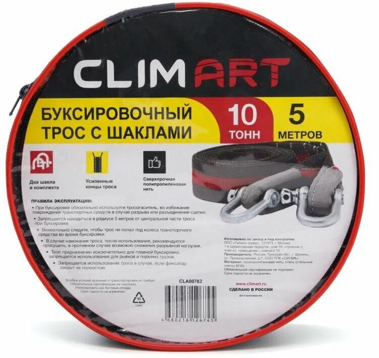 Трос буксировочный CLIM ART CLA00782 с шаклами CA 10т, 5м в сумке