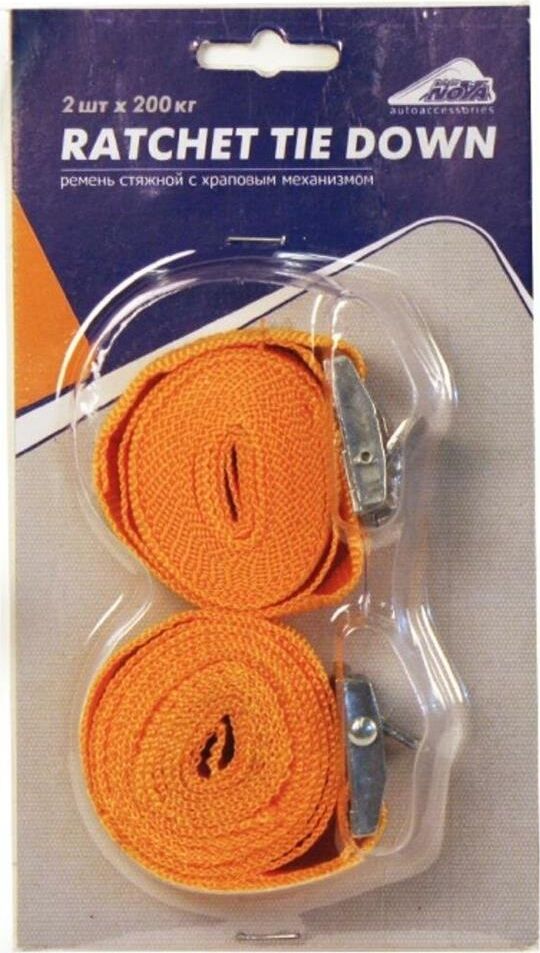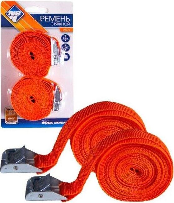 Трос буксировочный NOVA BRIGHT ленточная 2,5 см х 2,5 м, в блистере, с фиксатором (2 шт.) 39372