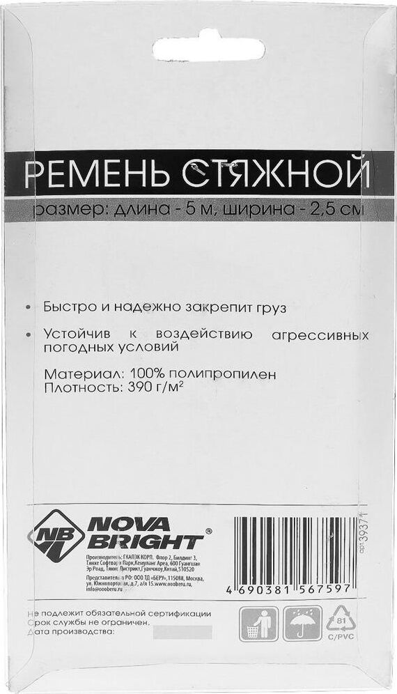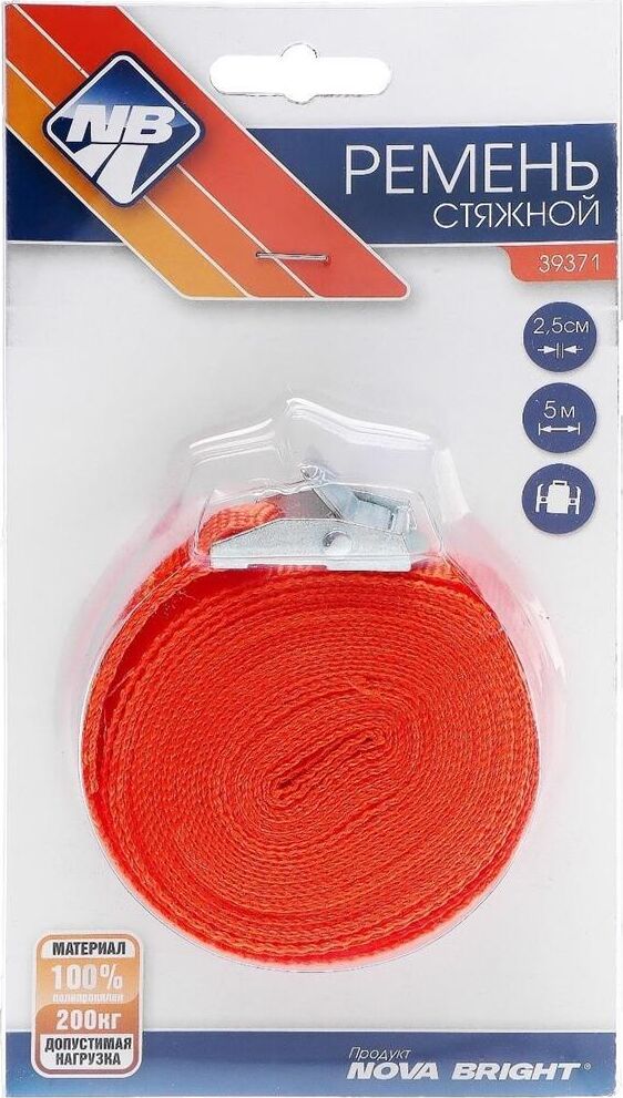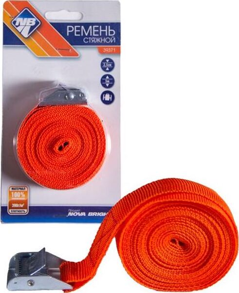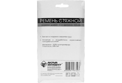 Трос буксировочный NOVA BRIGHT ленточная 2,5 см х 5 м, в блистере, с фиксатором 39371