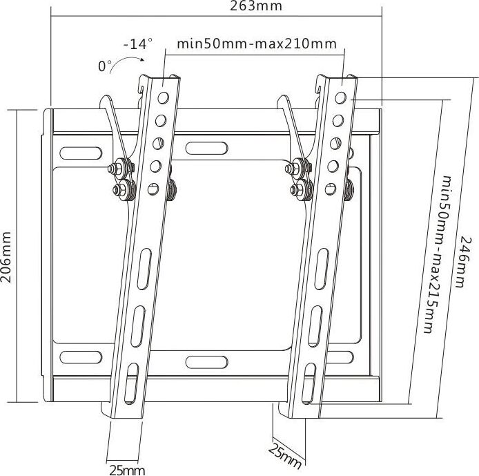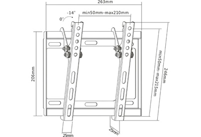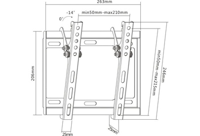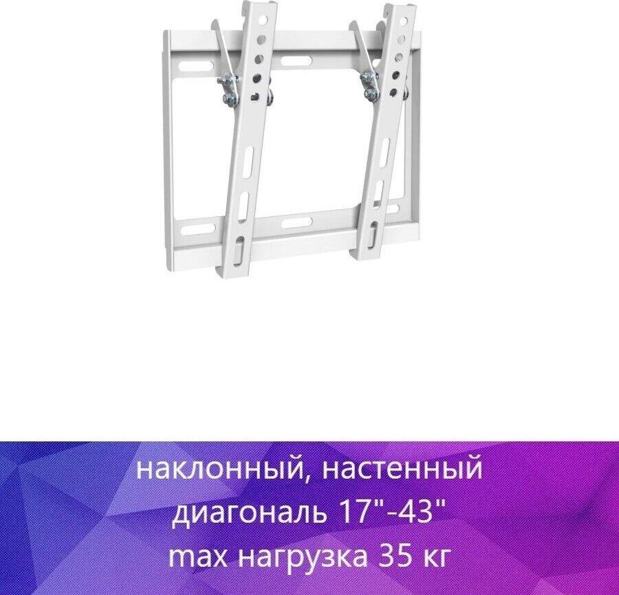 Для использования с телевизорами диагональю 17"-43", весом до 35кг. Расстояние телевизора от стены 25мм. VESA 75x75, 100x100, 200x100, 200x200. Возможен наклон до 14 градусов