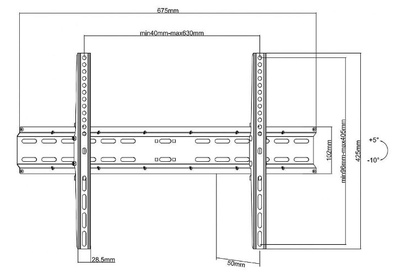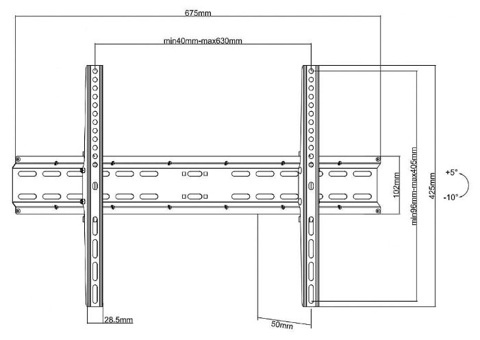 Для использования с телевизорами диагональю 37"-70", весом до 35кг. Возможен наклон до 10 градусов и подъем до 5 градусов .Расстояние телевизора от стены 50мм. VESA 200x200, 300x200,300x300,400x200,400x300, 400x400, 600x400.