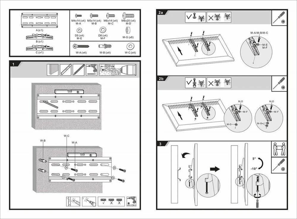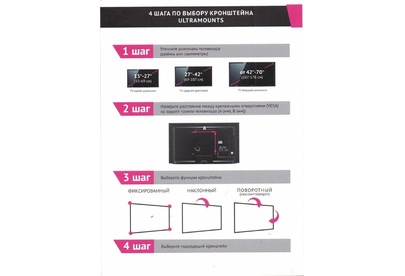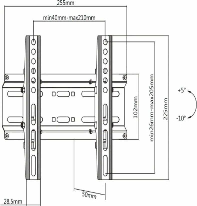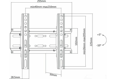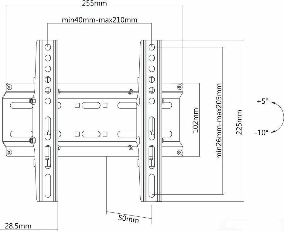 Для использования с телевизорами диагональю 23"-42", весом до 35кг. Возможен наклон до 10 градусов и подъем до 5 градусов. Расстояние телевизора от стены 50 мм. VESA 75x75,100x100,200x100,200x200 .