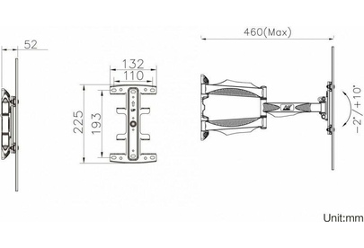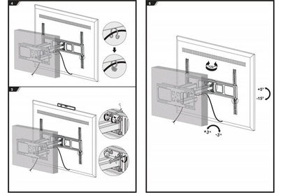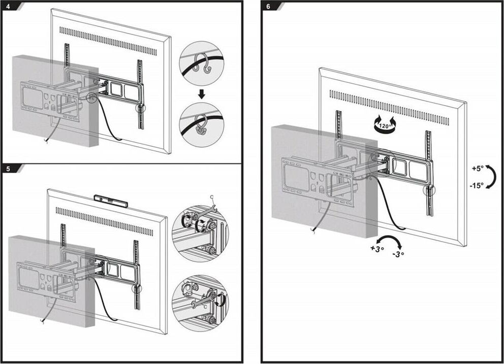 Для использования с телевизорами диагональю 37"-70", весом до 50кг. Возможен наклон до 15 градусов и подъем до 5 градусов Поворот влево и вправо на 60 градусов. Расстояние телевизора от стены 53-464мм. VESA 200x200, 300x300,400x400, 600x400