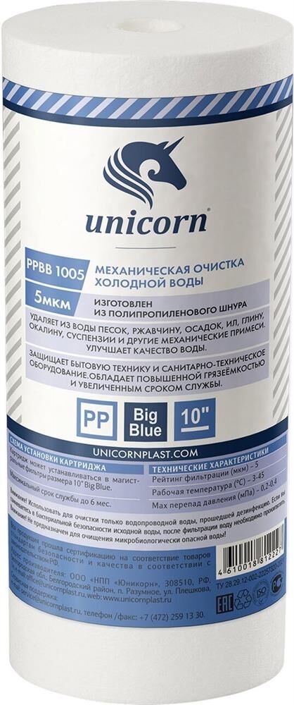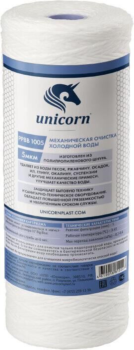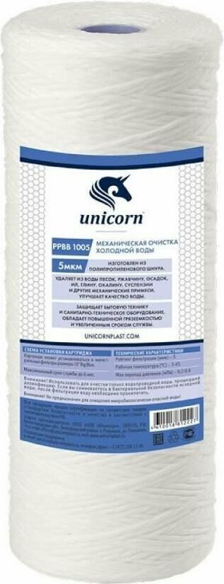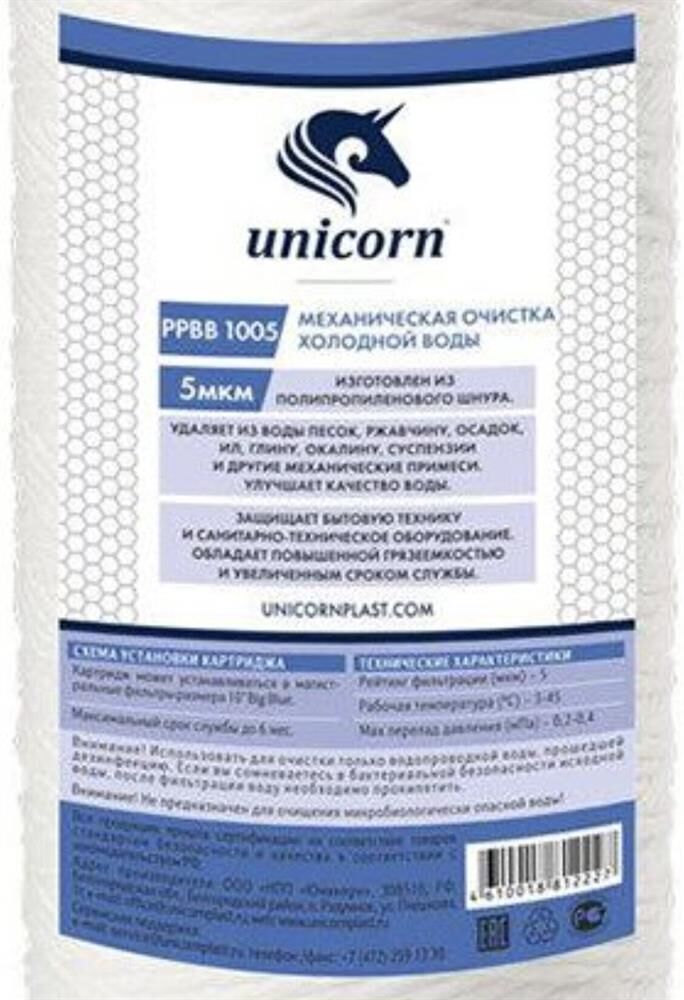 UNICORN Картридж механический из полипропиленового шнура для фильтров типа 10 ВВ 5 микрон РР ВВ 1005