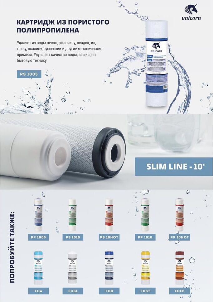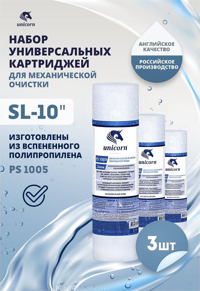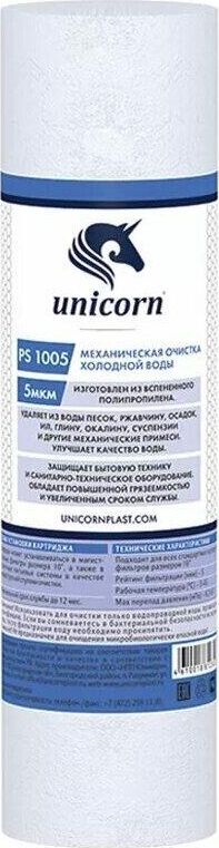 UNICORN Картридж механический из вспененного полипропилена 10" 5 микрон РS 1005 S
