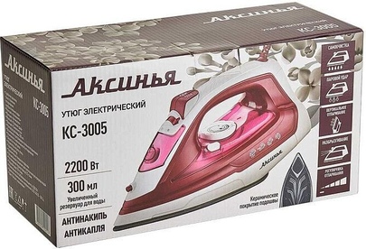 Утюг АКСИНЬЯ КС-3005 белый с малиновым