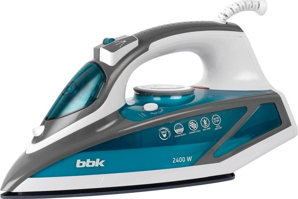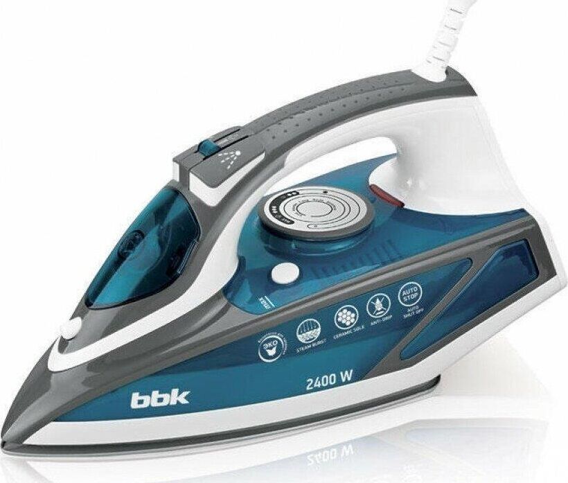 Мощность 2400 Вт, керамическое покрытие подошвы, паровой удар, вертикальное отпаривание, плавные регулировки подачи пара и температуры, автоматическое отключение при перегреве, устройство распыления воды, система самоочистки, противокапельная система, защита от накипи, длина шнура 1,8 м.