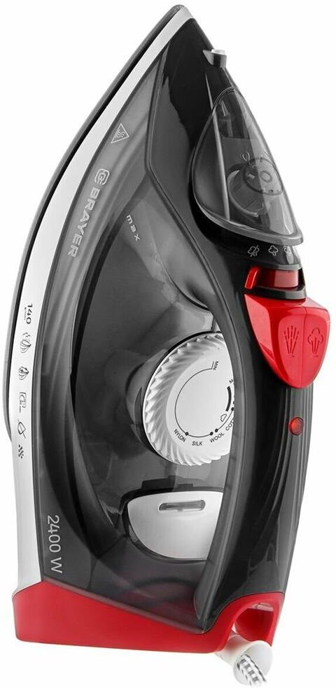 Максимальная мощность 2400 Вт Керамическое покрытие подошвы, обеспечивающее легкое скольжение по ткани Постоянная подача пара 20 г /мин Максимальный паровой удар 140 г/мин Вертикальное отпаривание Автоматическое отключение Плавная регулировка температурных режимов Встроенная система защиты от накипи Функция «Антикапля» Функция самоотчистки Функция разбрызгивания Резервуар для воды емкостью 330 мл Длина шнура 1,9 м Электропитание 220-240 В, ~ 50-60 Гц