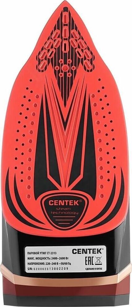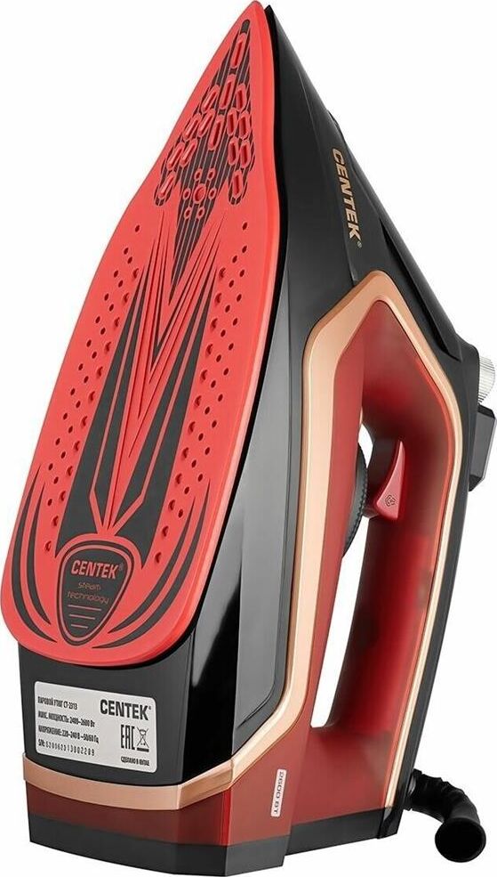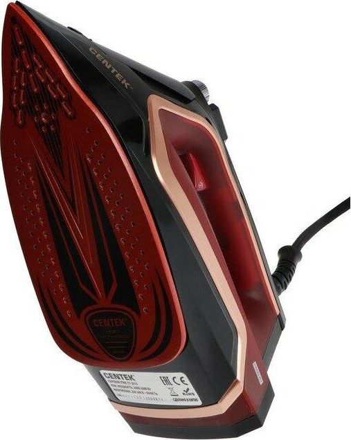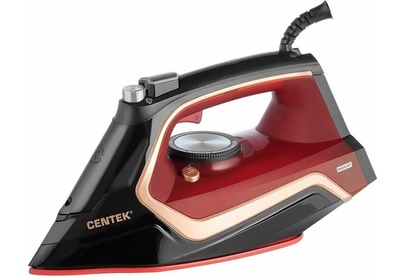 Утюг CENTEK CT-2313 RED Мощность2600 Вт Защита «капля-стоп» Функция самоочистки Керамическое покрытие Защита от накипи Мощный паровой удар Курковый механизм нажатия