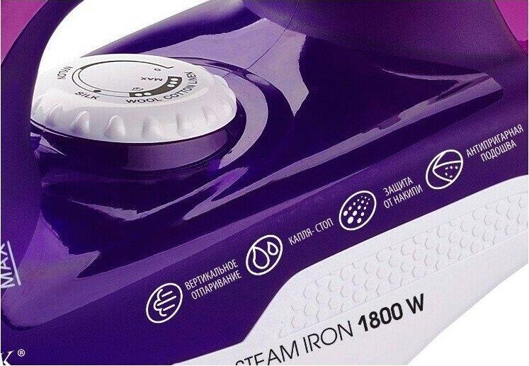 Утюг Centek CT-2348 фиолетовый (фиолет) 1800Вт, КЕРАМИЧЕСКАЯ подошва, паровой удар, самоочистка, 200мл