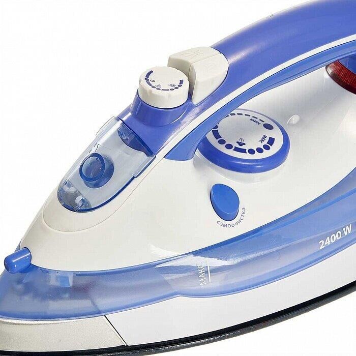 Макс. мощность 2400 Вт. Керамич. покрытие подошвы. Прозрачный резервуар для воды. Индикатор нагрева утюга. Терморегулятор. 3 рабочих режима: сухое глажение, отпаривание, разбрызгивание воды. Возможность регулировки степени отпаривания. Возможность вертикального отпаривания. Функция «Паровой удар», «Самоочистка», Антинакипь.