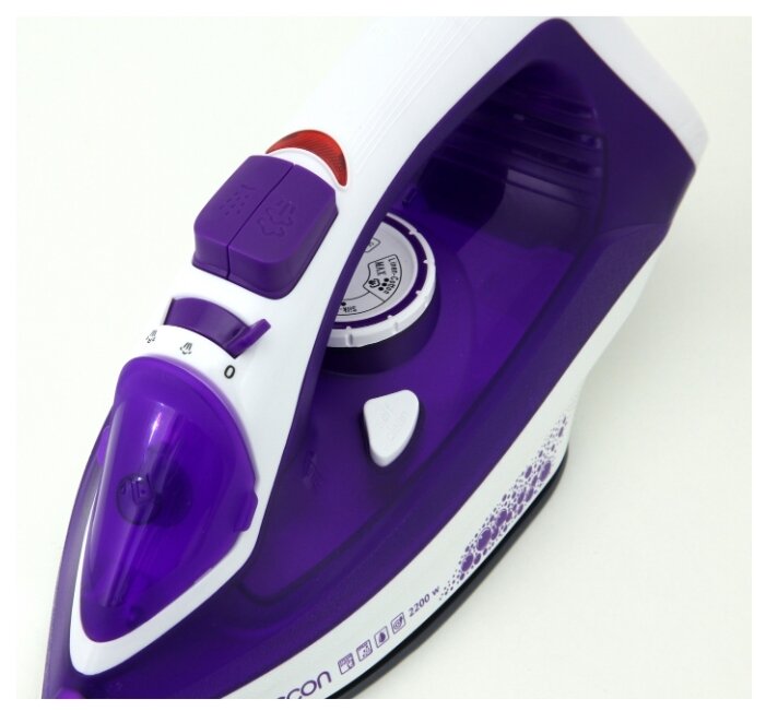 Утюг паровой электрический Керамическая подошва Мощность 2200 Вт Регулируемая температура Регулируемая подача пара Функция сухого глажения Паровой удар Функция «Спрей» Функция самоочистки Противокапельная система Вращение шнура 360 Объём резервуара для воды 300 мл Постоянный пар 40 г/мин Паровой удар 120 г/мин