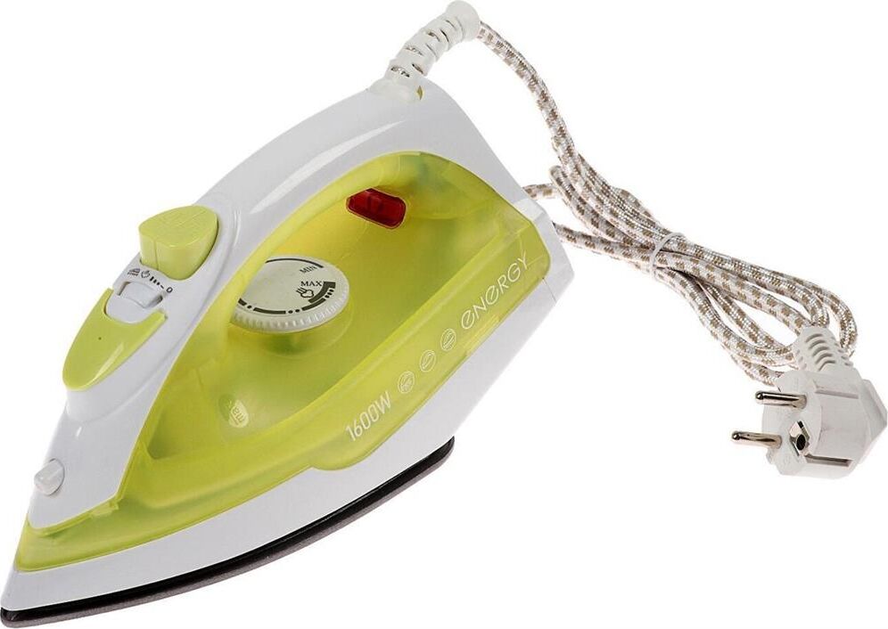 Мощность 1600 Вт. Тефлоновая подошва. Сухое глажение. Пар. Паровой удар. Вертикальный пар. Спрей. Функция самоочистки. Объем резервуара 200 мл. Цвет желтый.
