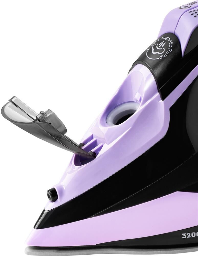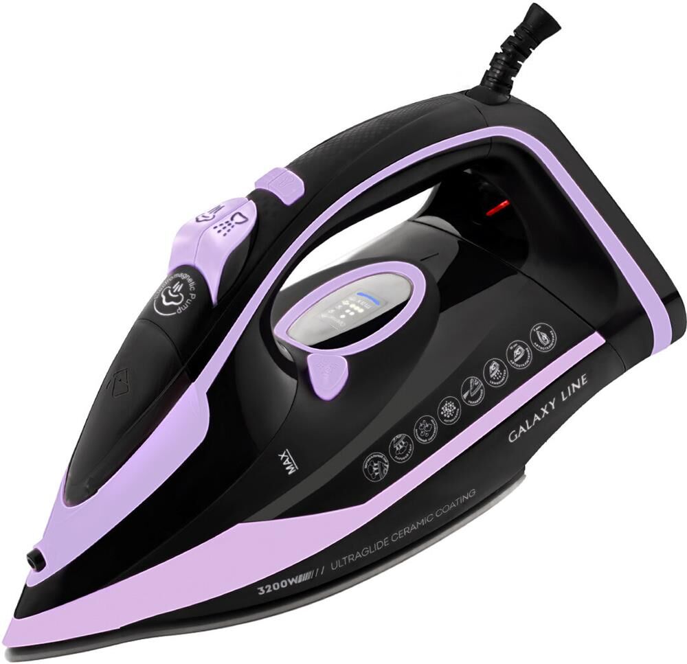 Утюг Galaxy LINE GL 6135, черный с лиловым, паровой с помпой, 3200 Вт, пост. пар 90 г/мин, пар-й удар 260 г/мин, функция "Автооткл-е", вертик. отпар.