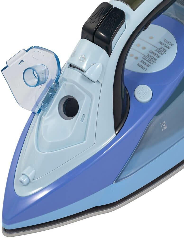 Габариты (Ш х В х Г) 310?123?149 мм,Вес 1,45 кг,Потребляемая мощность 2000-2400 Вт,Питание 220-240 В / 50-60 Гц,Функция распыления воды есть (0,6 г/раз ±0,1 г),Система защиты от накипи есть,Функция парового удара есть (30гр/мин),Функция вертикального отпаривания есть,Автоматическое отключение есть (гор - 1 мин, верт - 10 мин),Материал подошвы керамика тёмная