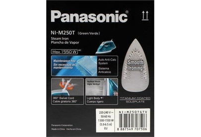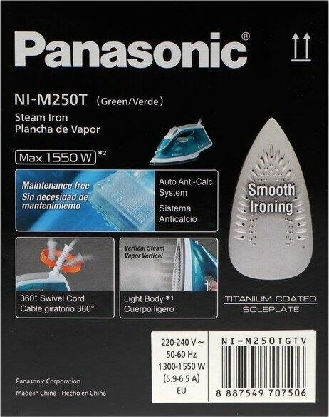 Мощность 1550Вт, Форма подошвы U-Shape, антипригарное титановое покрытие подошвы, Сферическая подошва Round-Ride, титановое покрытие подошвы,подача пара 75г