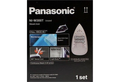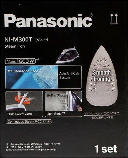 мощность: 1800 Вт, материал подошвы: титан, расход при постоянной подаче пара: 20 г/мин, расход при паровом ударе: 80 г/мин, регулировка подачи пара, дополнительные функции: паровой удар, постоянная подача пара