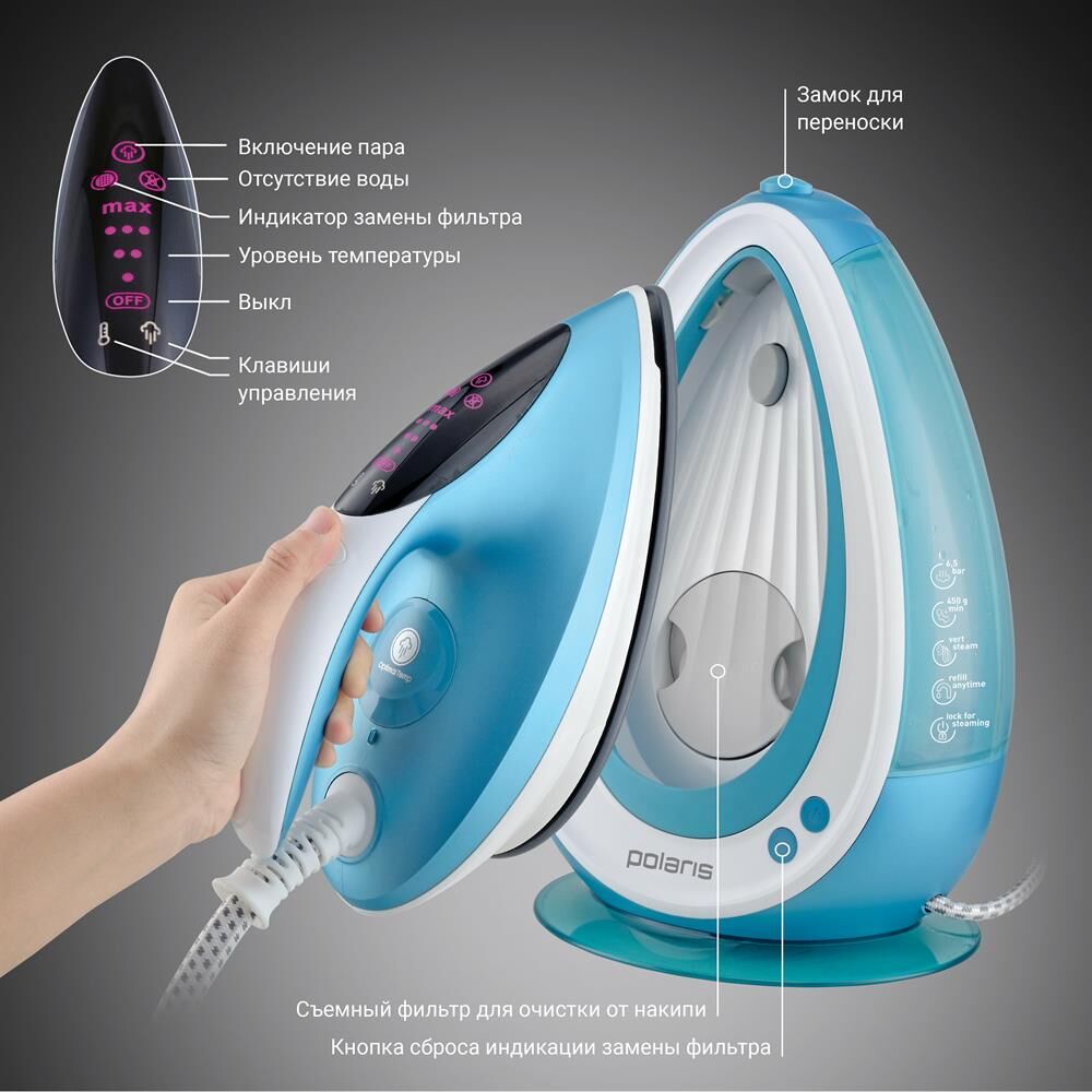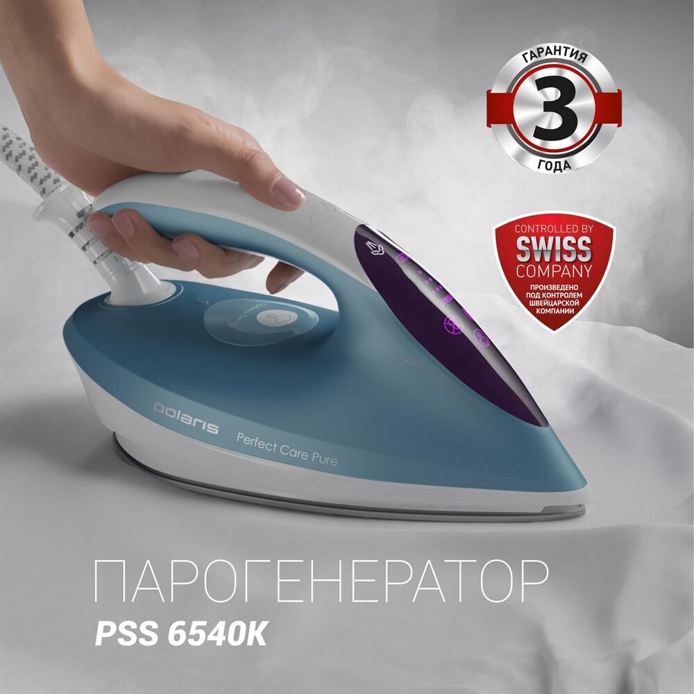 Утюг POLARIS PSS 6540K парогенератор белый/бирюзовый