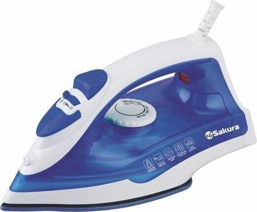 Мощность 1800Вт, резервуар для воды 220мл, тефлоновая подошва (182х100 мм), сухое глажение / глажение с пароувлажнением, регулировка подачи пара, мощный паровой удар, вертикальный пар, самоочистка, световой индикатор работы, кабель питания 1.8 м. Цвет: белый/синий.