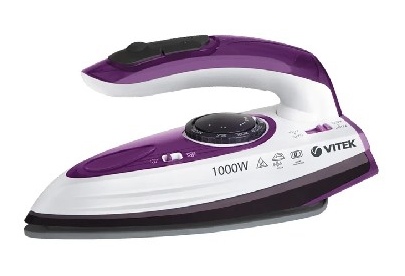 VITEK VT-8305 VT Мощность 1000 Вт Подошва керамика Функции постоянная подача пара Дорожный да, резервуар для воды на 70 мл Складная ручка