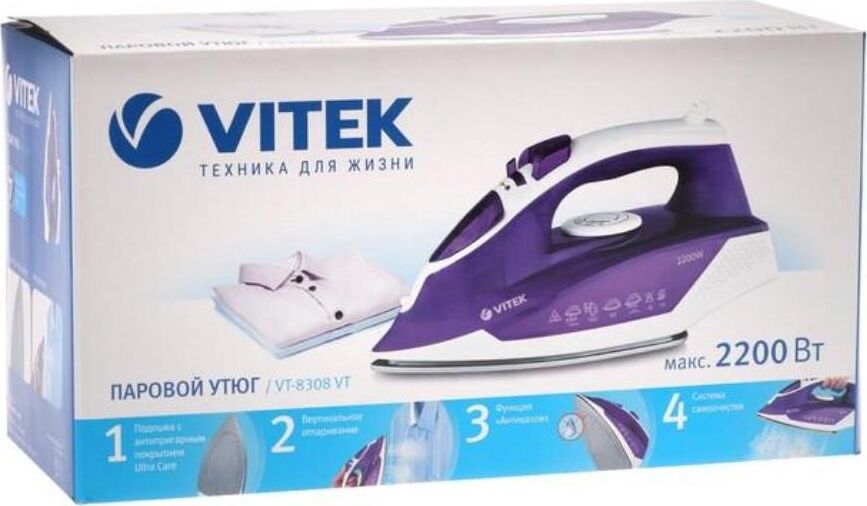 8308(VT) Утюг VITEK Мощность 2200 Вт (макс.) Антипригарная подошва Паровой удар.