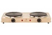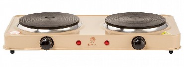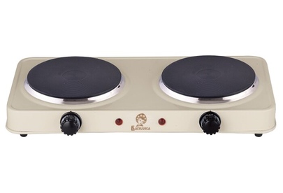 Номинальная потребляемая мощность 2000 Вт, Количество конфорок 2 штуки, Эмалированная рабочая поверхность, Цвет эмали: бежевый, Поворотные механические переключатели, Световой индикатор работы, Терморегулятор, Упаковка: цветная коробка.