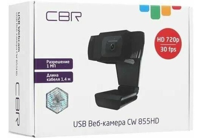 [Цифровая камера] CBR CW 855HD Black, Веб-камера с матрицей 1 МП, разрешение видео 1280х720, USB 2.0, встроенный микрофон с шумоподавлением, фикс. фокус, крепление на мониторе, длина кабеля 1,4 м, цвет чёрный CBR CW 855HD Black, Веб-камера с матрицей 1 МП, разрешение видео 1280х720, USB 2.0, встроенный микрофон с шумоподавлением, фикс. фокус, крепление на мониторе, длина кабеля 1,4 м, цвет чёрный масса(кг)