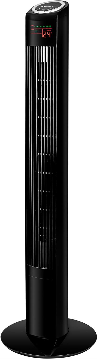 LED-дисплей с индикацией режимов работы 3 скорости воздушного потока 3 режима работы: обычный, бриз, ночной Таймер 1-12ч Пульт дистанционного управления Устойчивая конструкция с вращением корпуса на 70° Мощность 45 Вт Высота вентилятора 124 см Электропитание 220-240V ~ 50 Гц