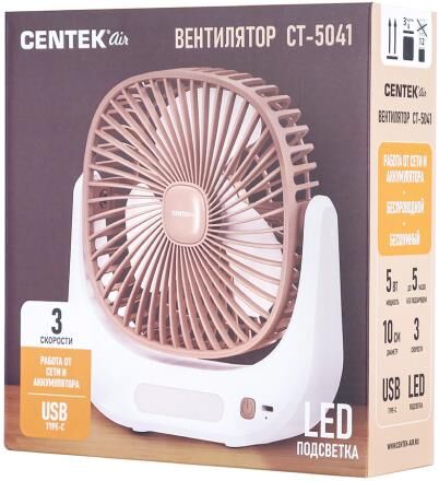 Технические характеристики Напряжение питания 220-240 В~50 Гц Мощность 5 Вт Кол-во режимов работы 3 Работа от сети и от аккумулятора ✓ Беспроводной ✓ Описание прибора Ваш вентилятор имеет следующие основные функции: До 5 часов работы без подзарядки ✓ Диаметр решетки 10 см LED подсветка ✓ Безопасная решетка ✓ Комплектность Вентилятор – 1 шт. – Силиконовая накладка на ножку - 2 шт. – Зарядный USB-кабель Type-C - 1шт. – Руководство пользователя – 1 шт.