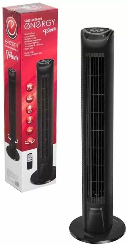 ENERGY EN-1616 TOWER (напольный, колонна) с пультом черный Современный Дизайн Серия TOWER Высота 74 см 3 скорости Пульт Таймер (7,5 часов) Функция поворота Мощность 45Вт