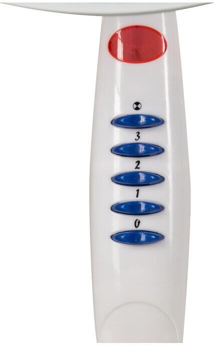 Цвет белый+синий Основание крестовидное Тип управления кнопочное Производительность, м?/ч 1800 Максимальная мощность, Вт 40 Размеры изделия (Д?Ш?В), мм 430?450?1200 Вес, кг 2 Угол горизонтального поворота 90° 3 скорости вращения Максимальная высота 1,2 м Подсветка Угол вертикального наклона 90° Регулировка высоты