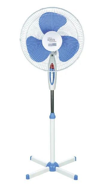 Напольный вентилятор Диаметр лопастей 35 см / Три скорости вращения / Регулировка угла наклона / Максимальная высота 120 см / Встроенная подсветка / Напольное исполнение / Цвет: белый+синий / кол-во в упаковке: 4 шт