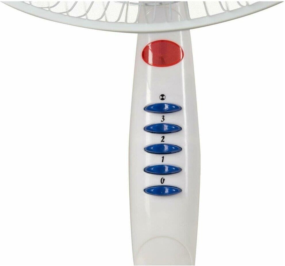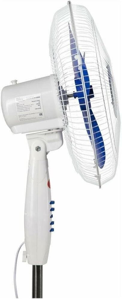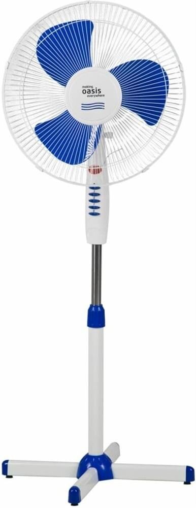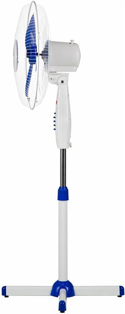 Напольный вентилятор Диаметр лопастей 35 см / Три скорости вращения / Регулировка угла наклона / Максимальная высота 120 см / Встроенная подсветка / Напольное исполнение / Цвет: белый+синий / кол-во в упаковке: 4 шт