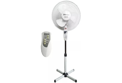 40Вт, напольный, механ. управление с пультом, 3 режима работы, защитная решетка: диаметр 40 см (16"), 102 прута, 3 лопасти диаметром 35 см, крестообразная подставка. Регулировка: вертикальная, горизонтальная, по высоте (макс. 1,3 м). Поворот на 90°. Таймер на 7,5 часов. Длина шнура 1,6м. Срок службы прибора: 5 лет. Цвет: бело-серый.