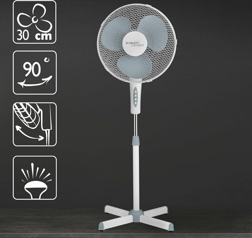 Напольный вентилятор Scarlett SC-SF111B20 в жаркую погоду пригодится дома и в офисе. Он поможет создать в помещении комфортный микроклимат. ПРОДУМАННАЯ КОНСТРУКЦИЯ Эта модель оборудована винтом диаметром 30 см. Для большей безопасности лопасти прикрыты защитной решёткой, а металлическое основание обеспечивает превосходную устойчивость. БОЛЬШЕ ВОЗМОЖНОСТЕЙ Устройство можно регулировать в горизонтальной и вертикальной поверхности, а также наклонять. За счёт этого вы направите воздушный поток так, как считаете нужным.