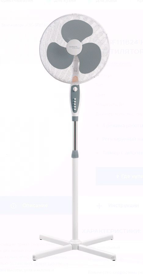 Вентилятор SCARLETT SC-SF111B24 с таймером (серый)