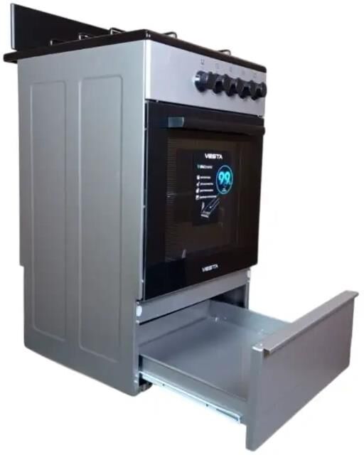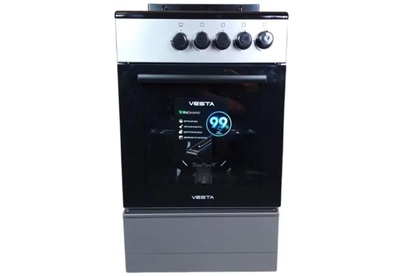 Габариты ШхВхГ, см: 50х85х57; Горелки стола: Газовые – 4 шт. Мощность горелок рабочего стола: -Горелка передняя левая/правая – 2,0/2,4 кВт. -Горелка задняя левая/правая – 2,0/1,0 кВт. -Мощность горелки духовки – 2,5 кВт. Объем духовки в литрах: 52,8 л. Нижний/верхний нагреватель духовки – газ. Газ-контроль духовки. Решетка рабочего стола – сталь. Щиток. Элементы комфортности: Термометр духовки. Выдвижной ящик . Противень – 1 шт.