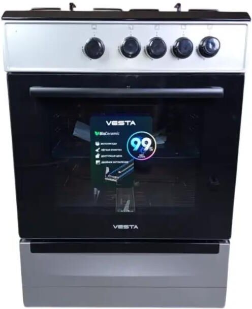 Горелки стола: Газовые – 4 шт. Ящик для посуды - выдвижной. Мощность горелок рабочего стола: -Горелка передняя левая/правая – 2,0/2,4 кВт. -Горелка задняя левая/правая – 2,0/1,0 кВт. -Мощность горелки духовки – 2,5 кВт. Объем духовки в литрах: 65 л. Нижний/верхний нагреватель духовки – газ. Газ-контроль духовки. Решетка рабочего стола – сталь. Щиток. Элементы комфортности: Термометр духовки. Противень – 1 шт. Масса нетто/брутто – 36/40 кг.