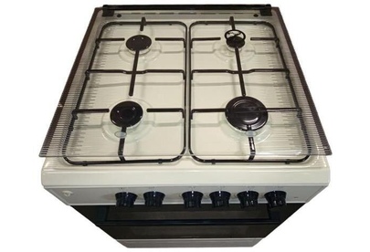 Ширина плиты, см 60; Глубина плиты, см 60; Объем духовки, л 65; Высота, см 85; Тип управления: Механическое; Материал решеток: Чугун; Горелки стола: газовые - 4 шт; Духовка: электрическая; 3 режима духовки; Съемное стекло дверцы духового шкафа; Электроподжиг конфорок; Термостойкое каленое стекло; Стеклянная крышка рабочего стола; Индикатор работы ТЭНа; Решетка рабочего стола: сталь; В комплекте противень: 2шт