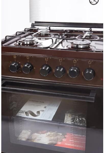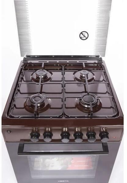 Горелки стола: Газовые – 4 шт. Мощность горелок рабочего стола: Горелка передняя левая/правая – 2,0/2,4 кВт. Горелка задняя левая/правая – 2,0/1,0 кВт. Электрический духовой шкаф. Объем духовки в литрах: 65 л. Верхний/нижний нагреватель духовки – тен.Решетка рабочего стола – сталь. Крышка рабочего стола – стекло. Термометр духовки. Кнопка электророзжига горелок стола. Электрическая подсветка духовки. Противень – 2 шт.