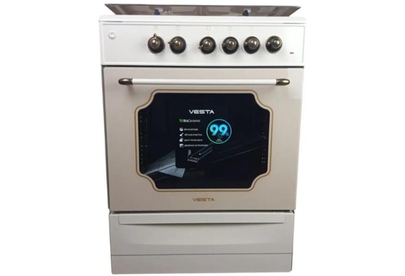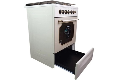 Горелки стола: Газовые – 4 шт. Выдвижной ящик для посуды. Мощность горелок рабочего стола: Горелка передняя левая/правая – 2,0/2,4 кВт. Горелка задняя левая/правая – 2,0/1,0 кВт. Электрический духовой шкаф. Объем духовки в литрах: 65 л. Верхний/нижний нагреватель духовки – тен.Решетка рабочего стола – сталь. Крышка рабочего стола – стекло. Термометр духовки. Кнопка электророзжига горелок стола. Электрическая подсветка духовки. Противень – 2 шт.Чугунные решётки. В/Ш/Г 850/600/600