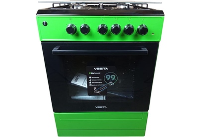 Горелки стола: Газовые – 4 шт. Газ.контроль - рабочего стола. Мощность горелок рабочего стола: Горелка передняя левая/правая – 2,0/2,4 кВт. Горелка задняя левая/правая – 2,0/1,0 кВт. Электрический духовой шкаф. Объем духовки в литрах: 65 л. Верхний/нижний нагреватель духовки – тен.Решетка рабочего стола – сталь. Крышка рабочего стола – стекло. Термометр духовки. Кнопка электророзжига горелок стола. Электрическая подсветка духовки. Противень – 2 шт. В/Ш/Г 850/600/600