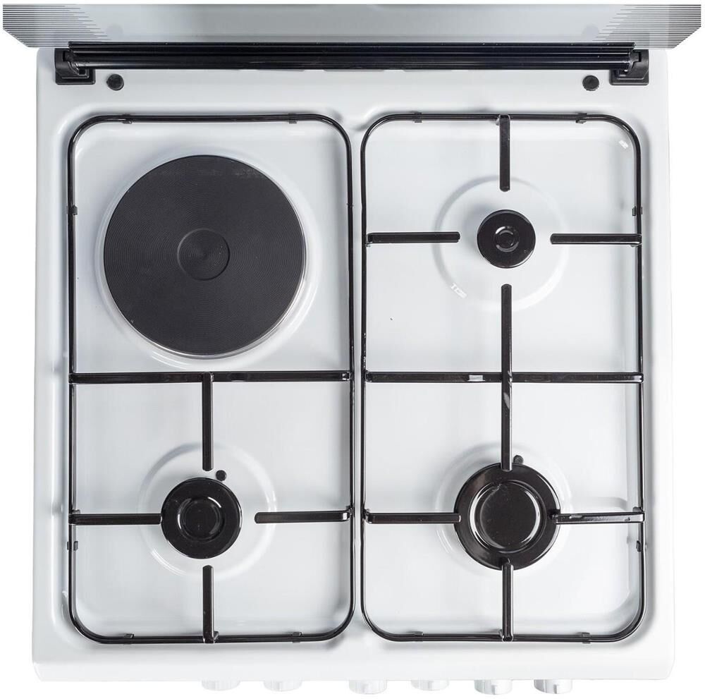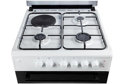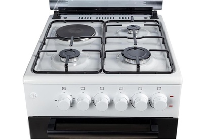 Габариты: (ШхВхГ) см - 60х85х60. Горелки стола: Газовые 3 шт. Электр. 1 шт. Мощность горелок рабочего стола: -Горелка передняя левая/правая 2,0/2,4 кВт. Горелка задняя левая, электрическая 1,5 кВт. Горелка задняя правая 1,0 кВт. Решетка рабочего стола сталь. Крышка рабочего стола стекло. Верхний нагреватель духовки ТЭН. Нижний нагреватель духовки ТЭН. Электророзжиг при помощи кнопки. Электрическая подсветка духовки. Термостат, Индикатор работы электроконфорок. Индикатор работы ТЭНа духовки. Противень 2 шт. Цвет Белый.