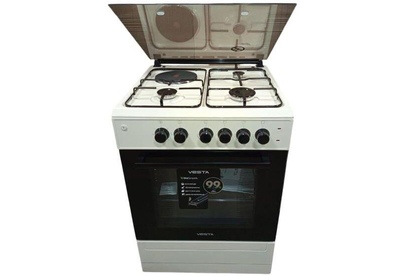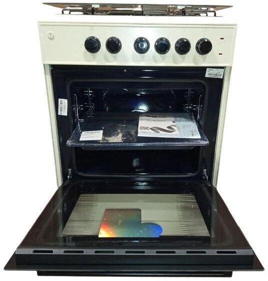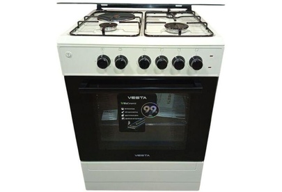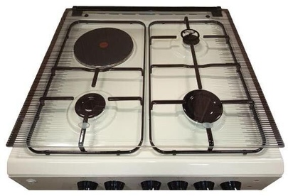 Ширина плиты, см 60, Глубина плиты, см 60, Объем духовки, л 65, Высота, см 85, Горелки стола: Газовые – 3 шт. Электр.–1 шт. Мощность горелок рабочего стола: -Горелка передняя левая/правая – 2,0/2,4 кВт. Горелка задняя левая, электрическая – 1,5 кВт. Горелка задняя правая – 1,0 кВт. Решетка рабочего стола – сталь. Крышка рабочего стола – стекло. Верхний нагреватель духовки – ТЭН. Нижний нагреватель духовки – ТЭН. Электророзжиг при помощи кнопки. Электрическая подсветка духовки. Термостат, Индикатор работы электроконфорок. Индикатор работы ТЭНа духовки. Противень – 2 шт.