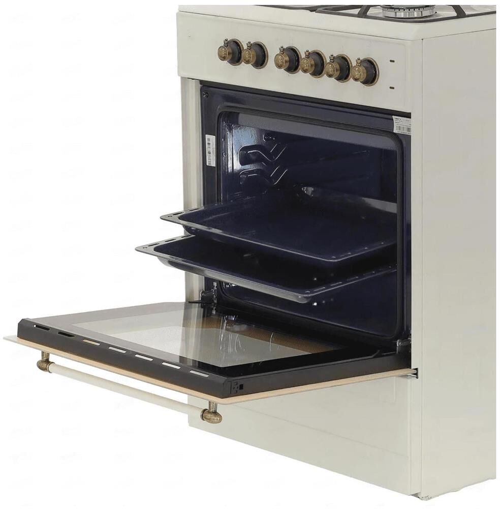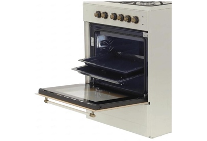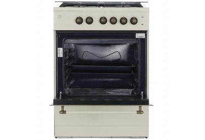 Габариты и вес: Ширина 60 см, Высота 83.5 см, Глубина 60.5 см, Вес 40 кг * Горелки стола: Газовые 3 шт. Электр. 1 шт. Мощность горелок рабочего стола: -Горелка передняя левая/правая 2,0/2,4 кВт. Горелка задняя левая, электрическая 1,5 кВт. Горелка задняя правая 1,0 кВт. Решетка рабочего стола чугун. Крышка рабочего стола стекло. Верхний нагреватель духовки ТЭН. Нижний нагреватель духовки ТЭН. Электророзжиг при помощи кнопки. Электрическая подсветка духовки. Термостат, Индикатор работы электроконфорок. Индикатор работы ТЭНа духовки. Противень 2 шт.