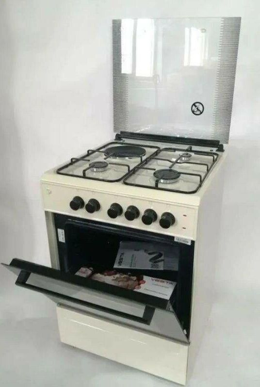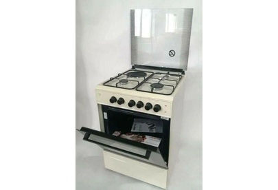 Габариты и вес: Ширина 60 см, Высота 83.5 см, Глубина 60.5 см, Вес 40 кг * Газ-контроль * Горелки стола: Газовые 3 шт. Электр. 1 шт. Мощность горелок рабочего стола: -Горелка передняя левая/правая 2,0/2,4 кВт. Горелка задняя левая, электрическая 1,5 кВт. Горелка задняя правая 1,0 кВт. Решетка рабочего стола чугун. Крышка рабочего стола стекло. Верхний нагреватель духовки ТЭН. Нижний нагреватель духовки ТЭН. Электророзжиг при помощи кнопки. Электрическая подсветка духовки. Термостат, Индикатор работы электроконфорок. Индикатор работы ТЭНа духовки. Противень 2 шт.