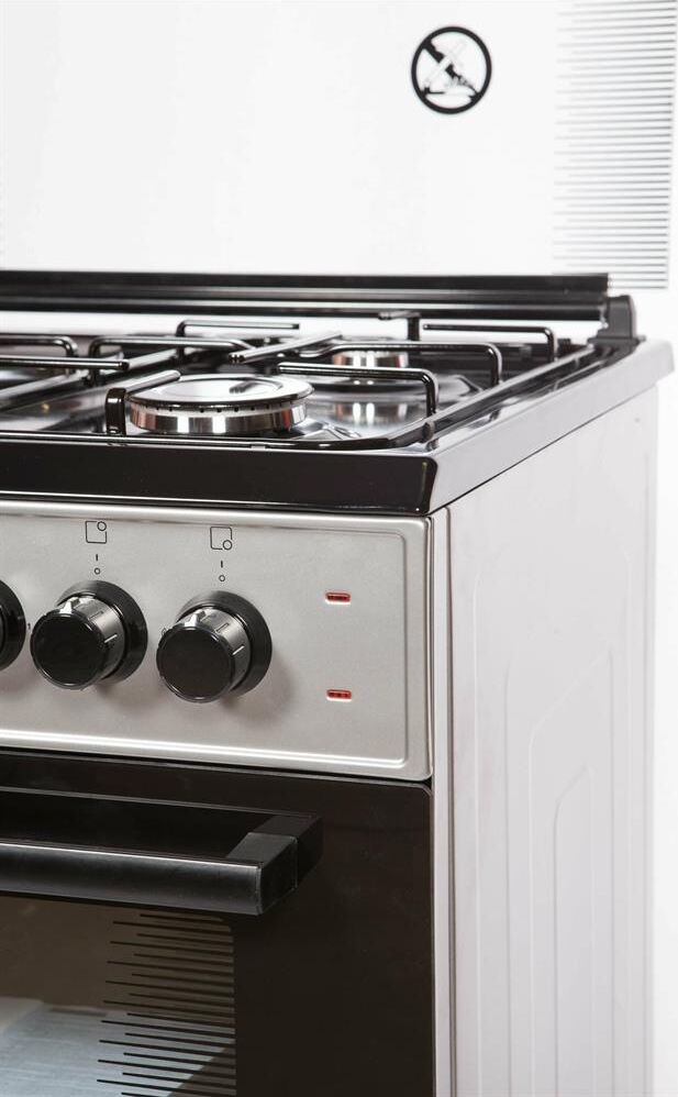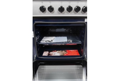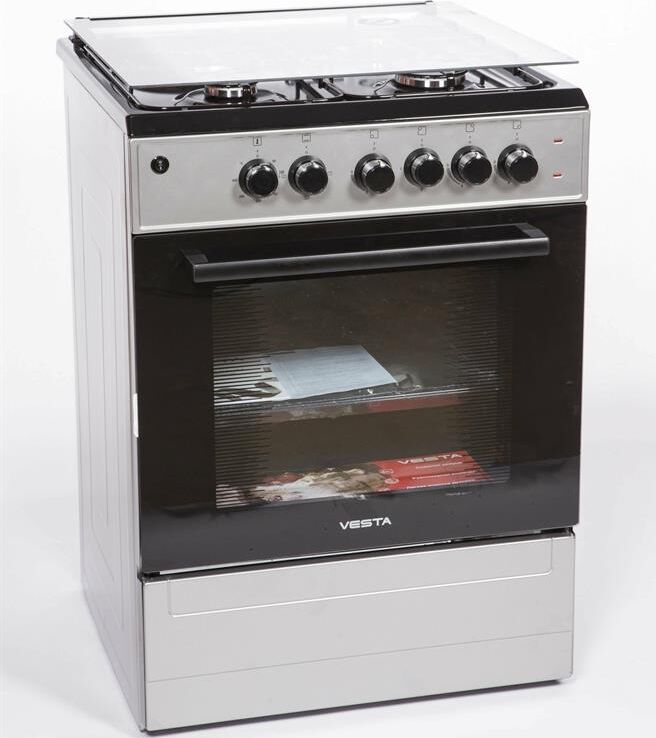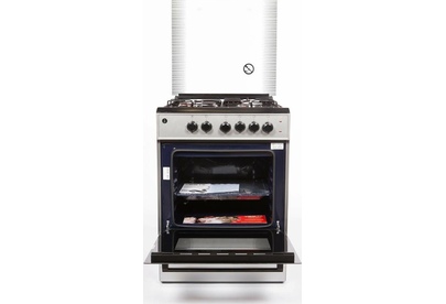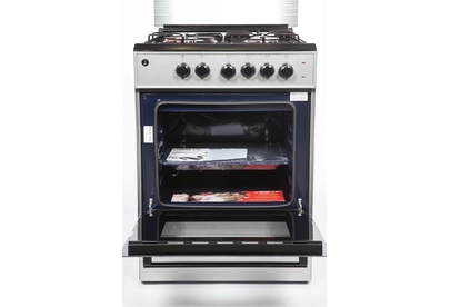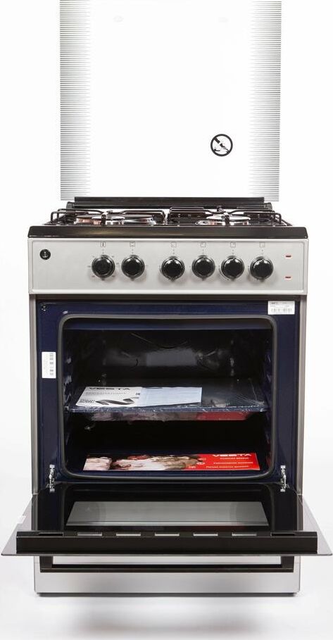 Горелки стола: Газовые – 3 шт. Электр.–1 шт. Мощность горелок рабочего стола: -Горелка передняя левая/правая – 2,0/2,4 кВт. Горелка задняя левая, электрическая – 1,5 кВт. Горелка задняя правая – 1,0 кВт. Решетка рабочего стола – сталь. Крышка рабочего стола – стекло. Верхний нагреватель духовки – ТЭН. Нижний нагреватель духовки – ТЭН. Электророзжиг при помощи кнопки. Электрическая подсветка духовки. Термостат, Индикатор работы электроконфорок. Индикатор работы ТЭНа духовки. Противень – 2 шт. Цвет Серый.