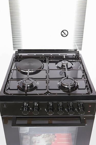 Цвет: чёрный; Тип: комбинированная плита; Тип установки: отдельностоящая; Материал варочной поверхности: эмалированная сталь; Материал решеток: эмалированная сталь; Тип внутреннего покрытия: эмаль; Тип варочной поверхности: комбинированная; Количество газовых конфорок: 3 шт; Количество электрических конфорок: 1 шт; Размер конфорок: 55 мм, 75 мм, 100 мм, 190 мм; Мощность конфорок: 1.9 кВт, 2.3 кВт, 3.3 кВт, 1.5 кВт; Тип электроподжига: механический; Тип духовки: электрическая; Объем духовки: 65 л; Диапазон температур: от +50°С до +300°С; Количество уровней готовки: 5 уровней; Количество режимов духовки: 3 шт; Режимы духовки: верхний нагрев, верхний нагрев + нижний нагрев, нижний нагрев; Система очистки: традиционная; Тип управления: механическое; Тип переключателей: поворотные; Внутреннее освещение; Количество стекол дверцы: 2 шт; Класс энергопотребления: А; Напряжение: 220-240 В